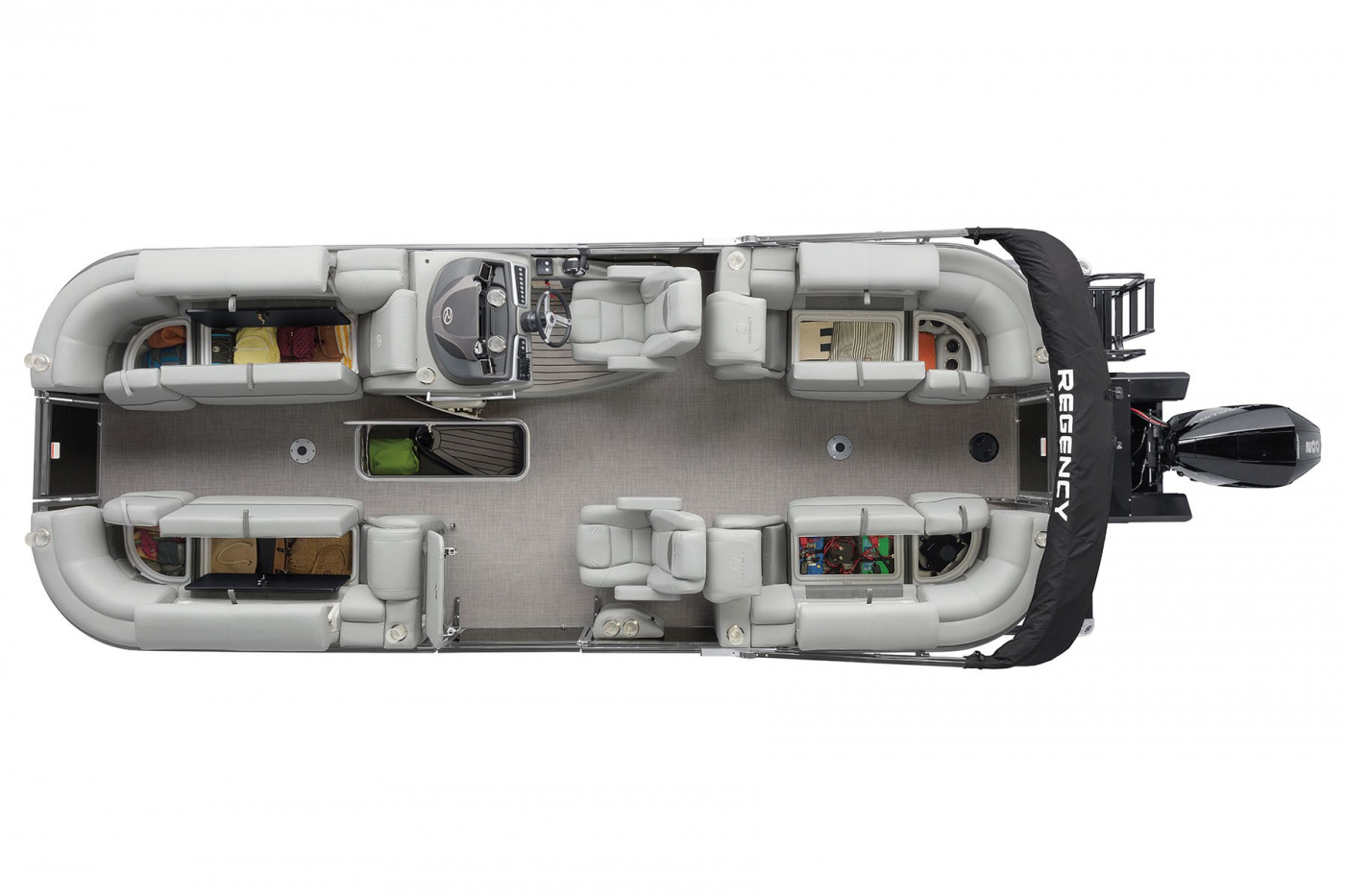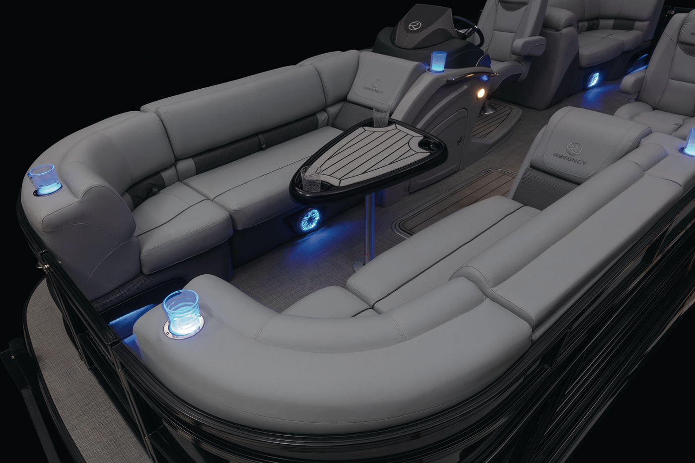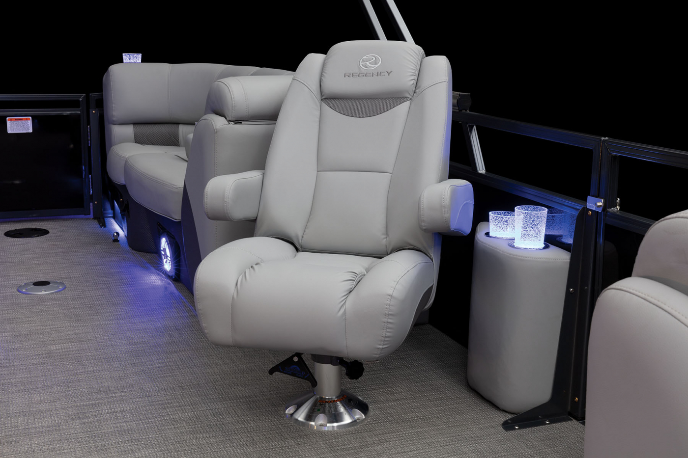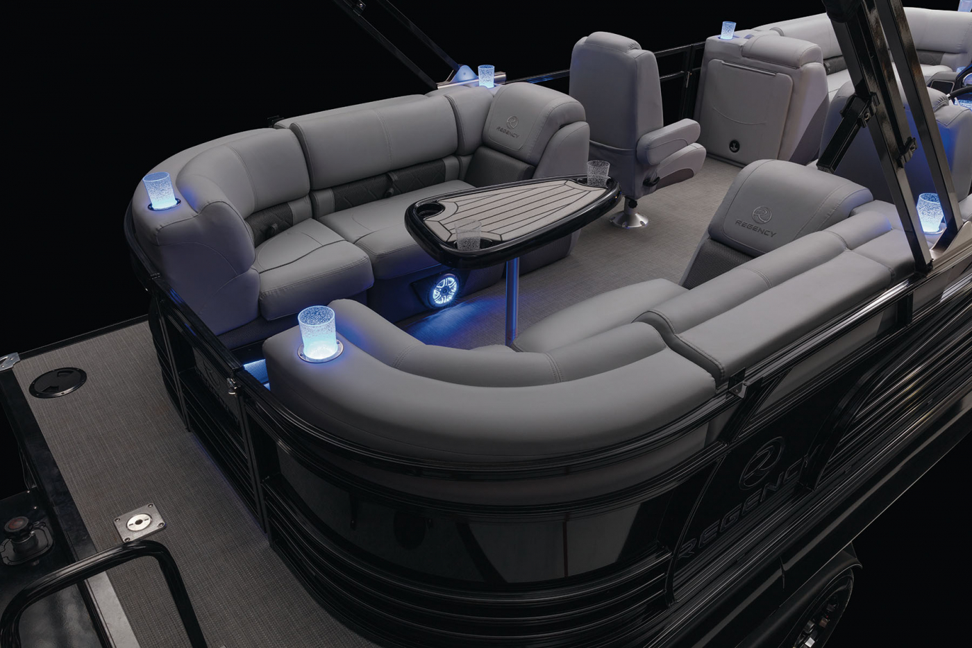 The REGENCY® team carefully designed the 230 LE3 to provide agile performance, classy styling and convenient comfort in a spacious luxury pontoon package.