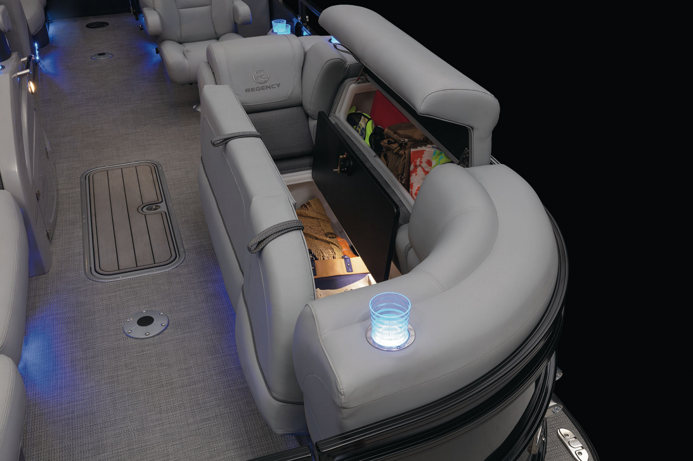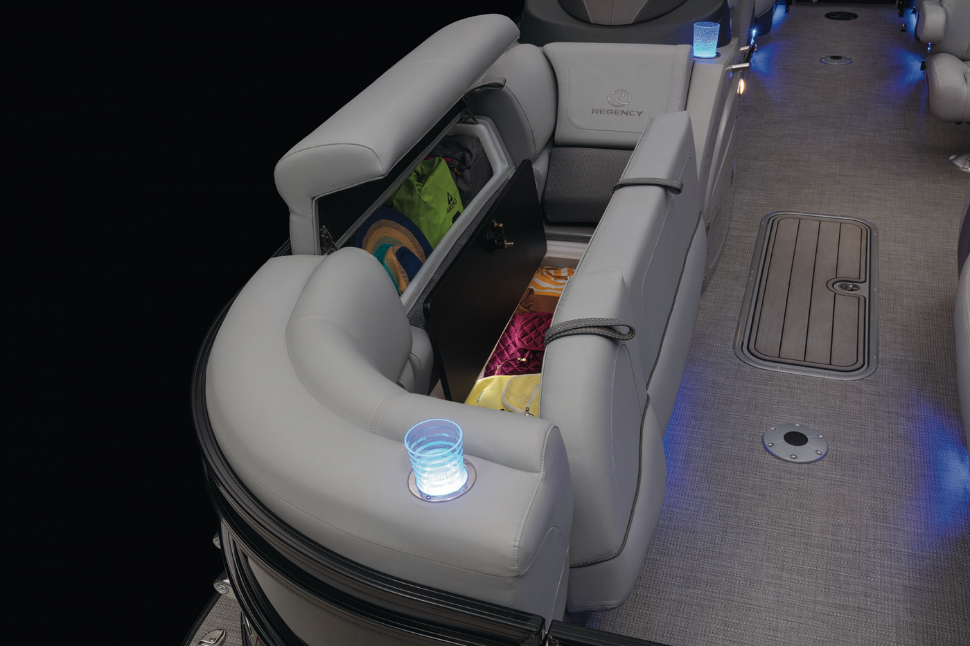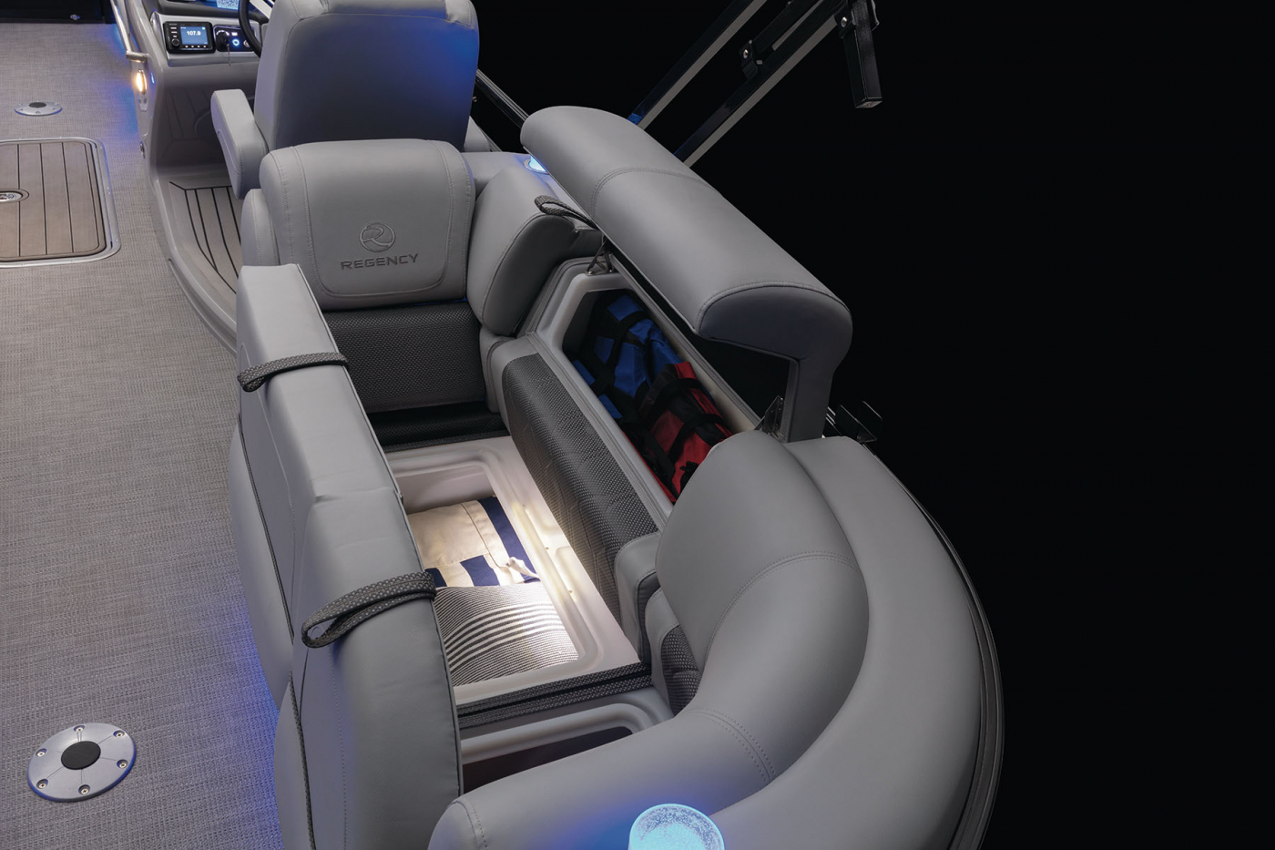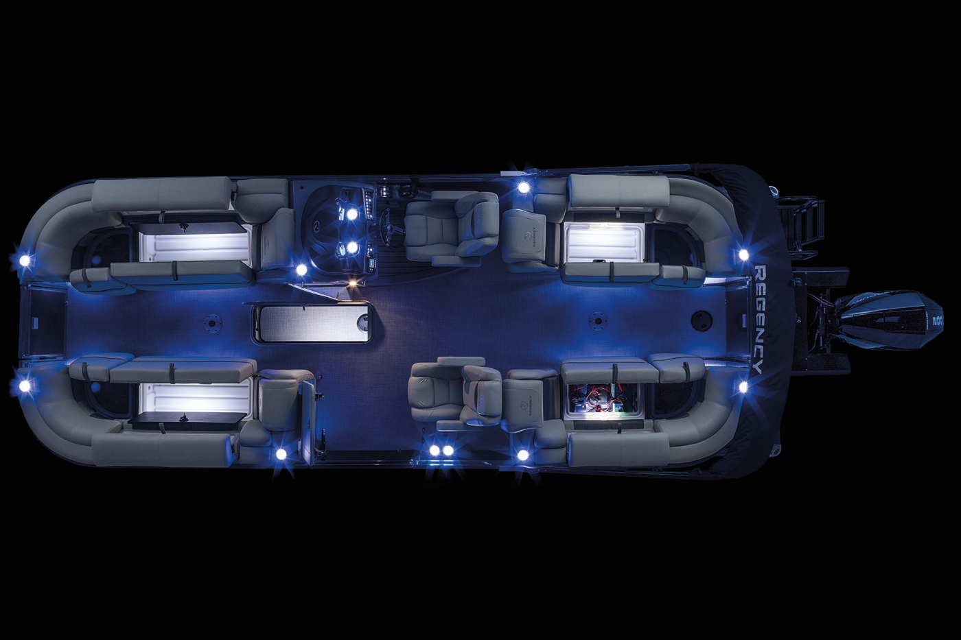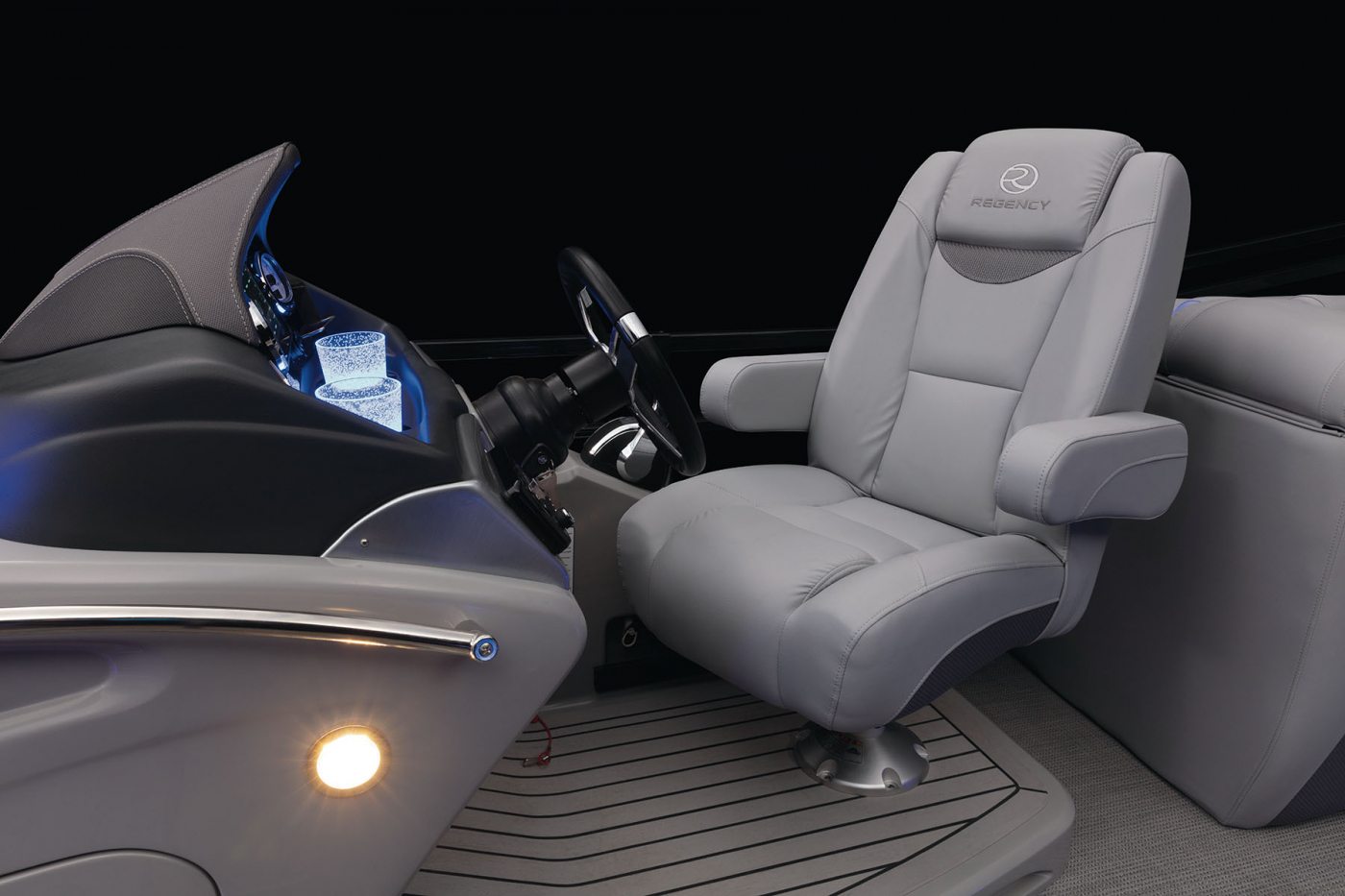 The REGENCY® team carefully designed the 230 LE3 to provide agile performance, classy styling and convenient comfort in a spacious luxury pontoon package.