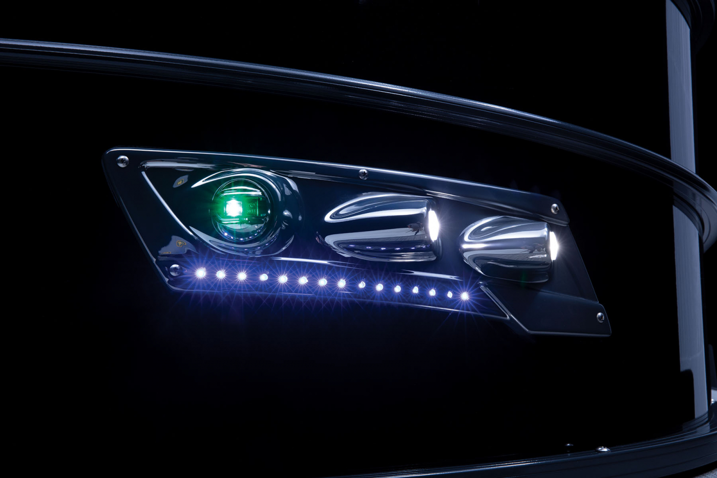 For performance, this model includes three 26” powder-coated pontoon logs with lifting strakes. For styling, powder-coated rails pair perfectly with sleek fencing—both in various color combinations to fit your preference.