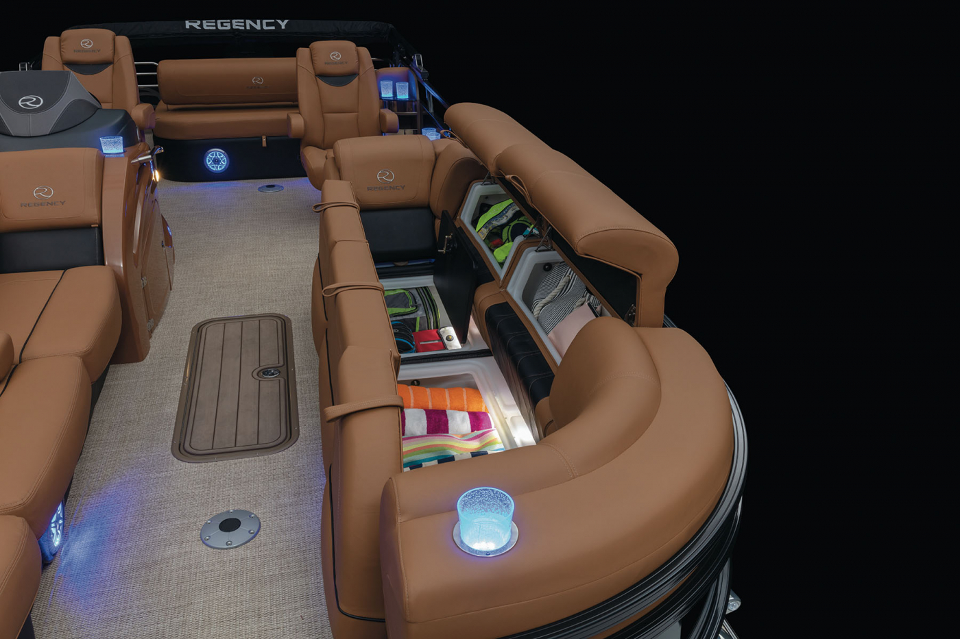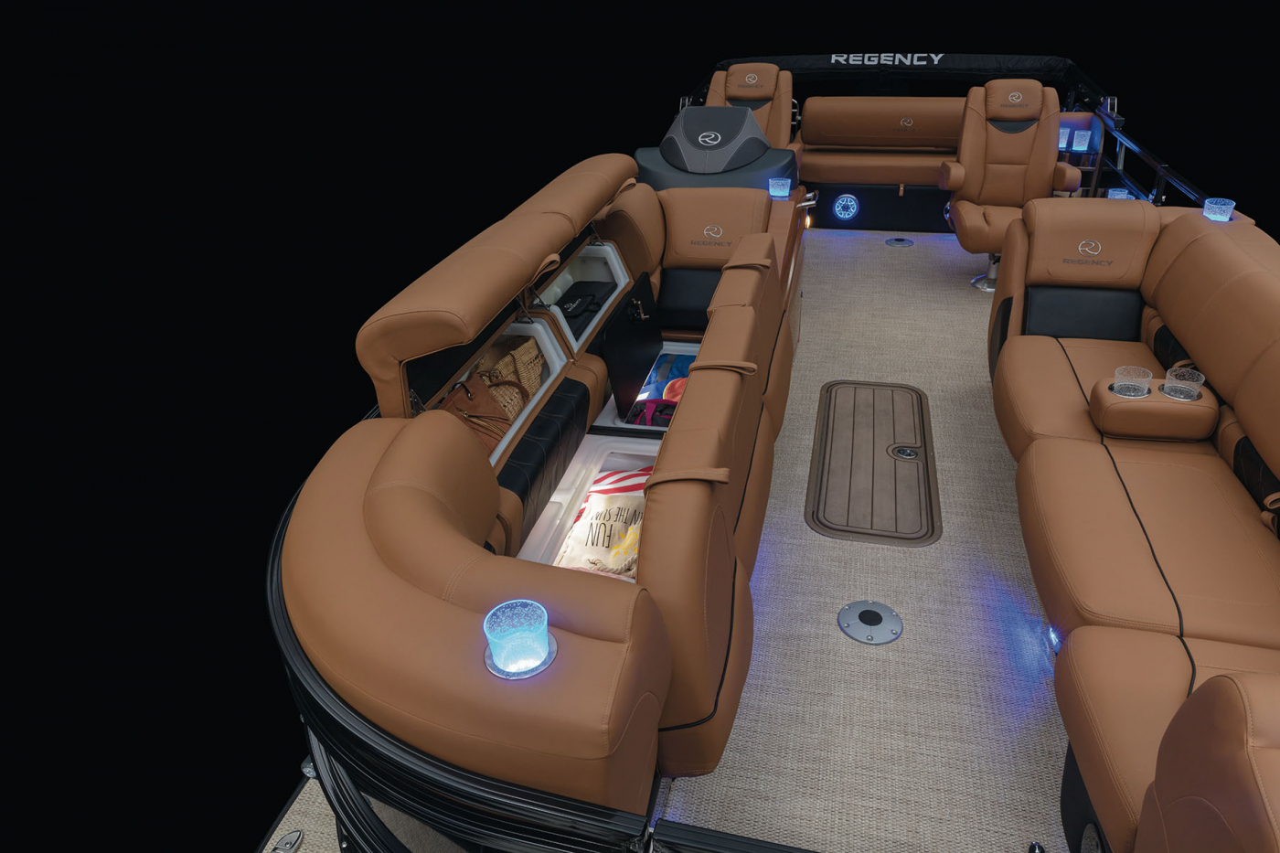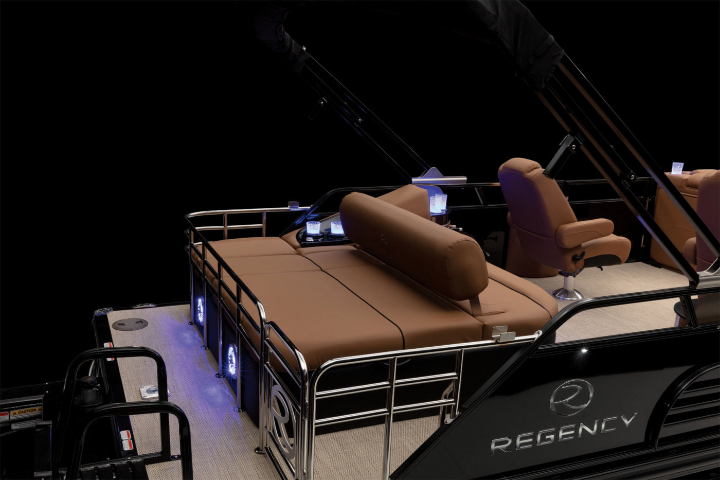 The REGENCY® 250 LE3 Sport pontoon provides a crew of 14 everything needed to experience adventure in luxury and comfort.