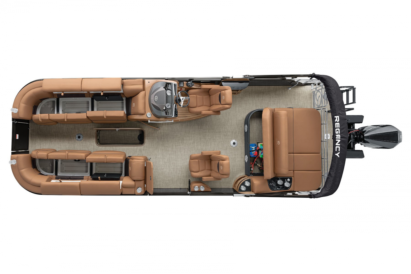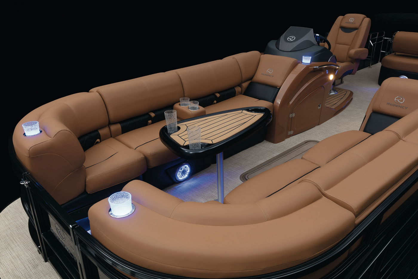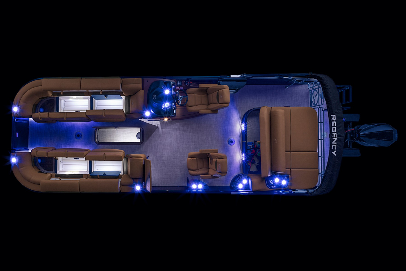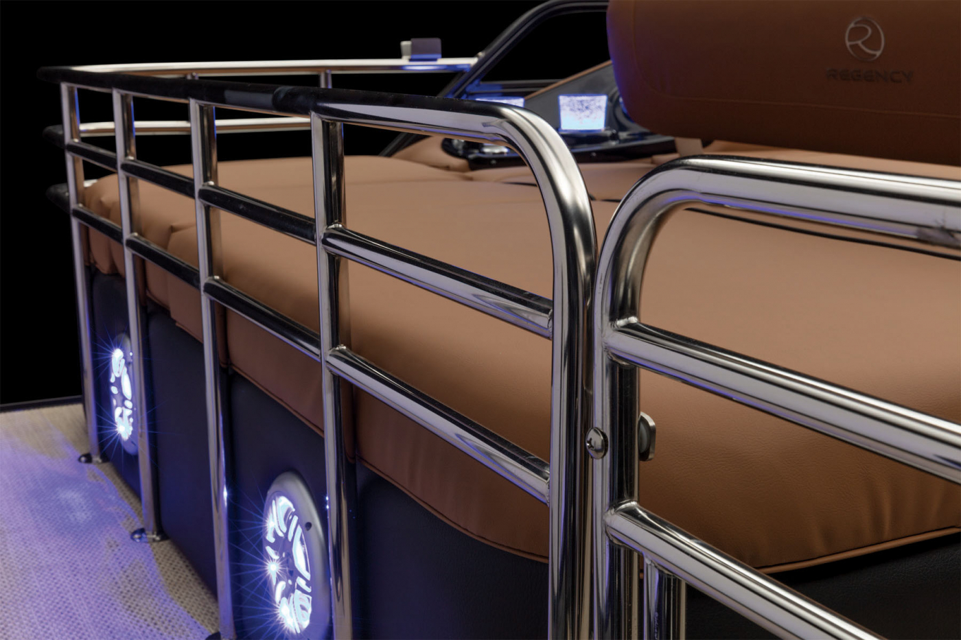 The REGENCY® 250 LE3 Sport pontoon provides a crew of 14 everything needed to experience adventure in luxury and comfort.