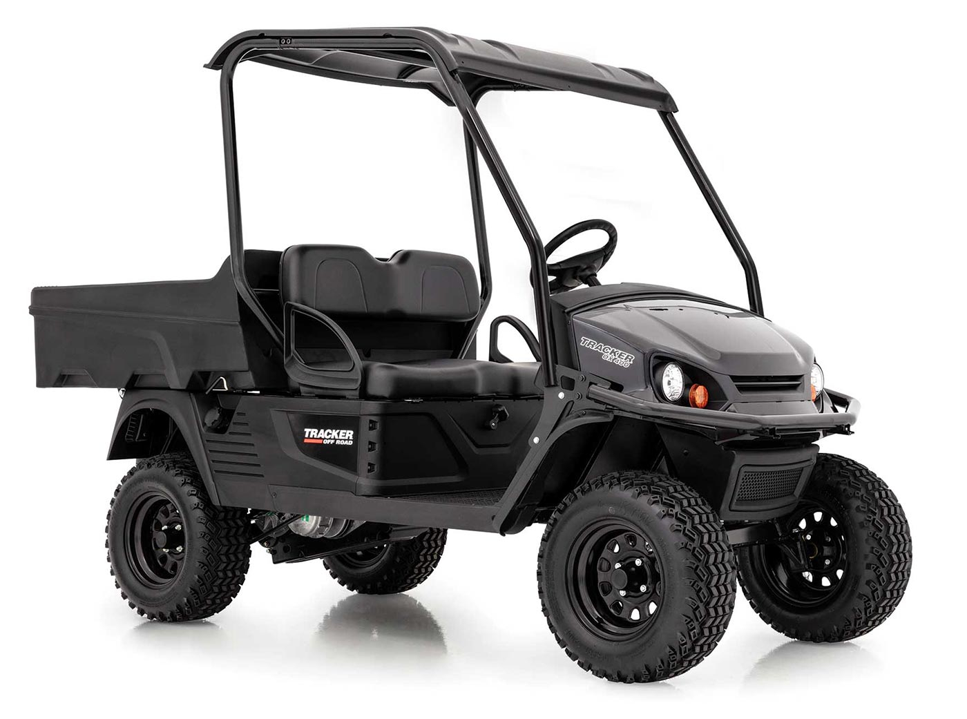 The TRACKER® OX400 is a hard-working, no-nonsense, two-person utility vehicle. It's ready to rock with a 1,200-lb. towing capacity and 500-lb. capacity/12-cu. ft. heavy-duty cargo box. Plus, it features a lifted suspension and aggressive-tread tires, you won't have to worry about rugged terrain stopping you from getting the work done. Now available in TrueTimber® STRATA Camo.